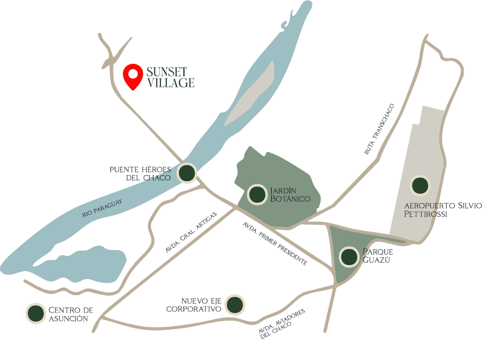 “El único barrio cerrado sobre la Autopista de Nueva Asunción, a 1000 metros del puente Héroes del Chaco que combina naturaleza, seguridad y estilo de vida, todo el día.”